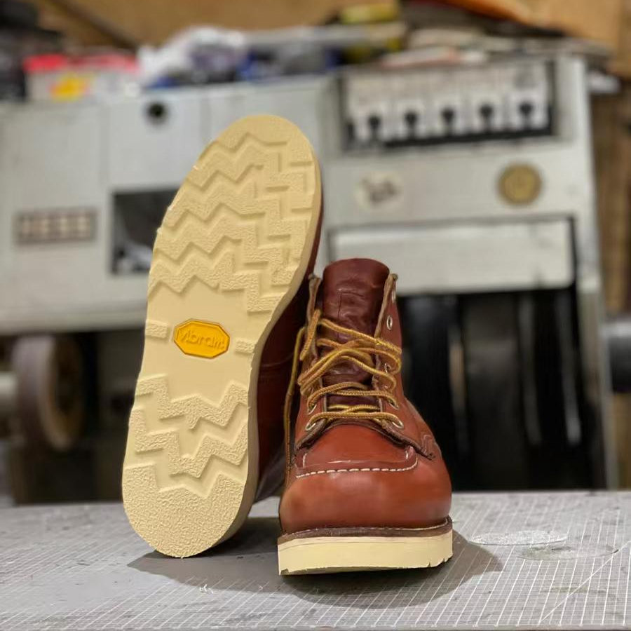 Resoled. Reloaded. Beat-up uppers meet Vibram 1132 Montagna's aggressive lugs—now these old warriors grip like a mountain goat. Broken in, not broken down.